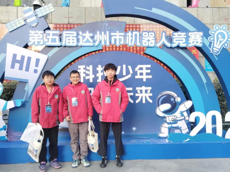 2025年11月27日至29日,我校“世纪之星”战队羊海瑞、刘家郎、袁一轩三位同学参加第五届达州市机器人竞赛暨市州邀请赛,并获得“机甲战神”项目初中组第一名、市州邀请赛第三名的优异成绩。